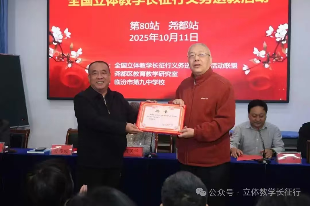 2025年10月11日,“全国立体教学长征行义务送教公益活动”在临汾市第九中学成功举办。活动中,该校正式挂牌成为全国第58个立体教学实验及推广基地。尧都区教体局党组成员宋卫平、教研室主任贾美兰、书记李青云、副主任王文艳,以及全区300余名语文教师共同参加了本次活动。