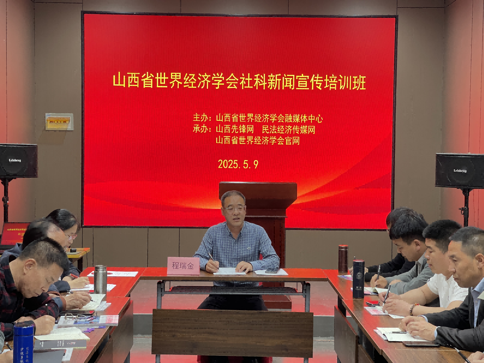 2025年5月9日,山西省世界经济学会社科新闻培训暨短剧创作制作基地揭牌仪式在山西乾阳影谷太原古县城旅拍基地举行。出席会议的有执行会长程瑞金,副会长、山西先锋网执行主编王晋东,副会长、《经济观察》杂志副主编王兆明,中新经济观察网执行主编李建英,党支部专职副书记蔡晓杰,调研部主任胡体云,副秘书长魏俊平、李静鹏、田文蒋及学会相关部门负责人等30余人。会议认真学习贯彻全国“两会”精神、学习贯彻山西省委书记唐登杰等领导在山西省社科联第四次代表大会讲话精神以及总结山西省世界经济学会2025年一季度工作情况并对上半年工作进行安排部署。会议由办公室主任孟艳主持。