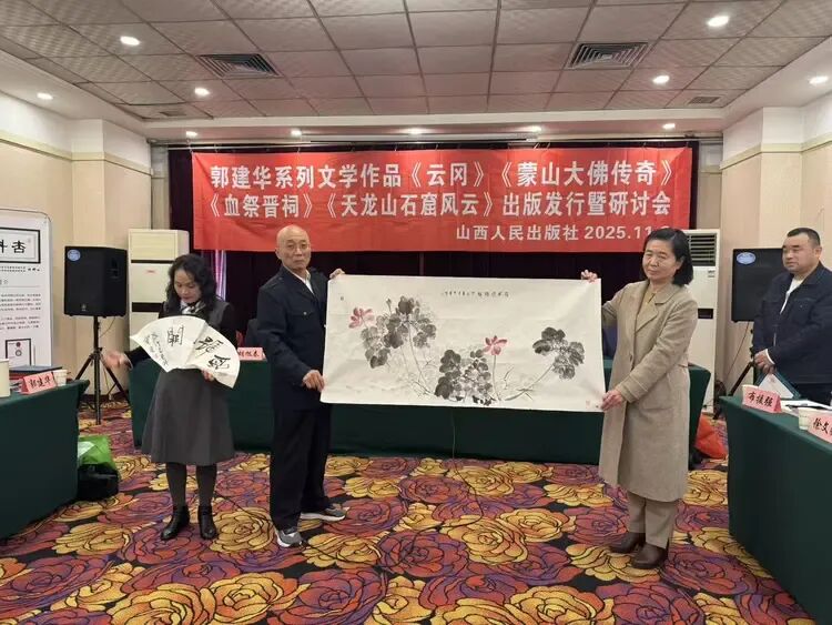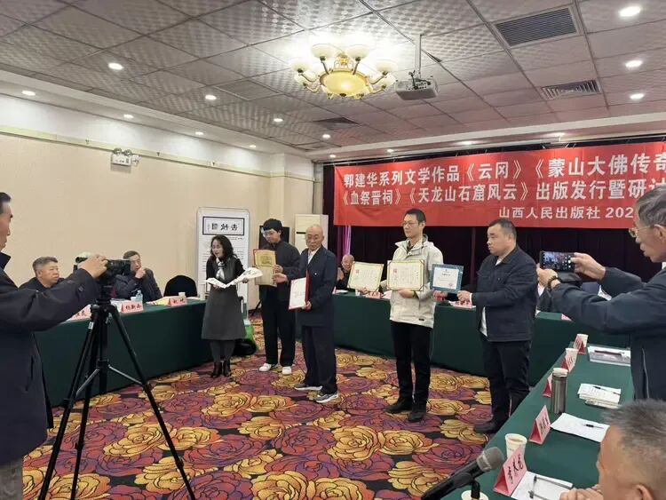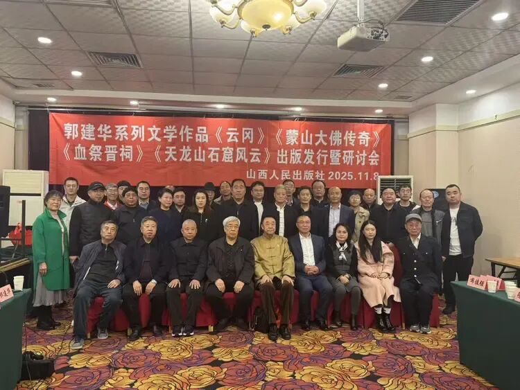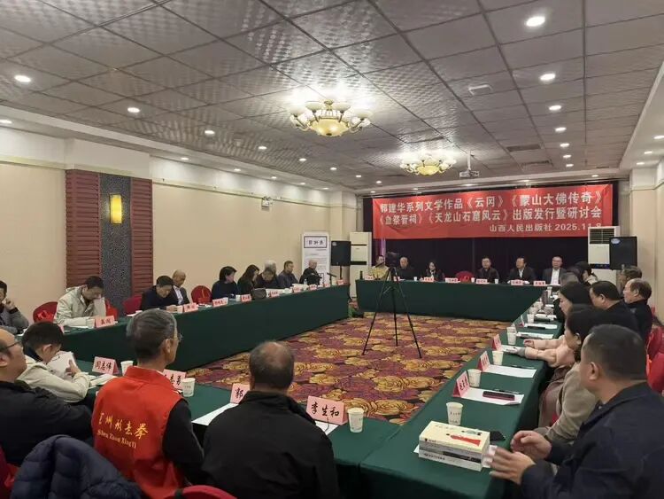 11月8日上午,三晋文化热土再迎文学盛事。由山西人民出版社主办,山西文学院指导,武汉大学山西校友会、太原市作家协会、光线诗社、太原市武术运动协会、山西乾阳影旅集团日月春秋影视剧本创作中心等多家单位联办的郭建华文旅(历史)题材系列文学作品《云冈》《血祭晋祠》《天龙山石窟风云》《蒙山大佛传奇》出版发行暨研讨会,在太原市三晋国际饭店隆重举行。举办单位、指导单位和联办单位有关领导,省市文学艺术、影视、旅游行业专家学者,企业家、景区负责人,武汉大学历史系专程赴并教授等济济一堂,在品读文学精品的同时,共探山西历史文化遗产的当代文学表达与多元传播路径。研讨会上,山西文学院院长、山西省作家协会副主席张卫平表示,山西素有深厚影视文脉,从民国西北影业到孙谦、马烽等前辈佳作,再到贾樟柯系列作品,始终佳作频出。郭建华的创作正是对这一文脉的延续,其作品聚焦云冈石窟、晋祠等山西知名历史文化遗存,这类题材创作极具挑战性。郭建华不仅具备丰富的历史知识积淀,还巧妙以武术视角切入叙事,人物设计独特,足见创作中下了苦功,契合 “内容为王” 的创作理念,期待未来能创作出更多彰显山西文化魅力的佳作。