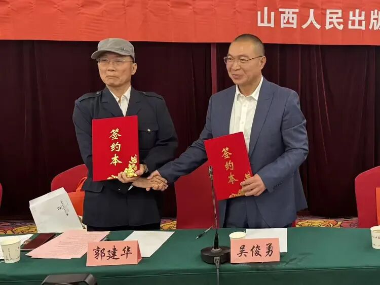 会上的两项重要议程更凸显了作品的价值与传播潜力:郭建华展示了中国国家图书馆、中国当代作家签名图书馆及山西省、市图书馆、档案馆颁发的永久收藏证书,这一认可既彰显文学价值,更凸显其在山西文化遗产文献化、经典化进程中的示范意义;武汉大学山西校友会与山西乾阳集团日月春秋影视剧创作中心现场签订战略合作协议,正式为四部作品的影视化征程按下启动键,将推动山西历史文化遗产以更具传播力的视听形态走进大众视野,为文旅融合注入新动能。在答谢发言中,郭建华坦言:"这几本书虽署我之名,实则是无数师友、文界同仁与出版团队共同浇灌的果实。"陈列现场的四部作品,封面印刻的云冈、晋祠、天龙山、蒙山,既是历史的坐标,更是文化传承的新起点。郭建华以笔为犁,深耕山西文化沃土,不仅延续了山西影视文学的厚重文脉,更让华夏文明的基因通过作品流淌不息。三晋的过去,正被用心记录;山西的未来,正被用力书写!